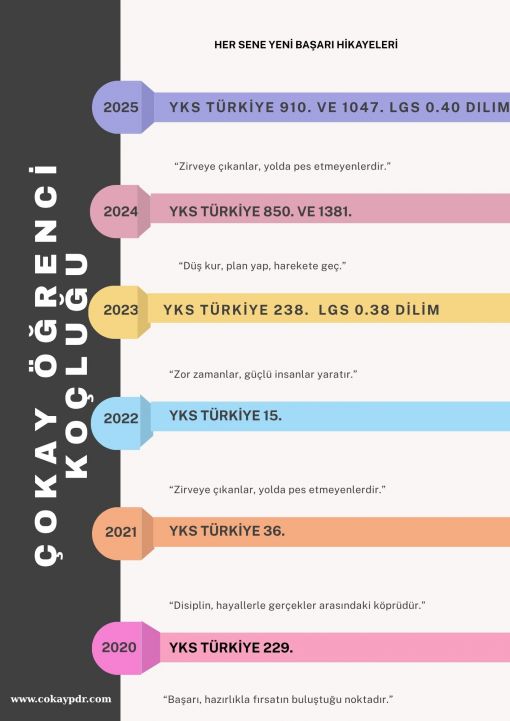 Öncelikle 2025 yılında gerçekleşen sınavlarda başarılı olarak hayallerini şansa bırakmayan tüm öğrencilerimizi kutluyoruz. Programlarımıza devam eden tüm öğrencilerimizin 2025 YKS de ilk 5 tercihine yerleşmeleri bizi ayrıca keyiflendirdi. İlk 10.000 içinde 48 derece ise bireysel başarıların üst seviyeye geldiğinin göstergesiydi. 2025 YKS sonuçlarında da aynı başarıyı göstereceğimizi düşünüyoruz.